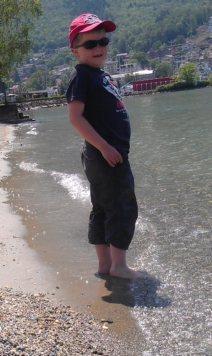 Över pingsten åkte hela familjen till Genèvesjön, i närheten av Montreux. Le Bouveret heter orten. Mattias och jag har varit där två gånger förut. Där finns en park med små tåg att sitta och åka på. En hel förmiddag åkte vi runt, runt... Sen var vi vid stranden också. Sanden var het, men vattnet i sjön kallt! Vi badade i poolen istället. Vi hälsade på vänner som har sin husvagn på campingen hela säsongen där. Efter maten lekte Mattias och Hanna med andra barn där, de ville inte alls bryta upp och sätta sig i bilen! Vi åkte hem med fantasier om att skaffa en husvagn och vara en sommar där. Helst nu med en gång! Vet inte hur Mattias klarar av att resa på sig nästa sommar. Han som älskar att leka i sanden, hämta vatten, gå ut och bada lite, upp igen och sätta sig i sanden. Går det nästa sommar? Borde vi inte göra det NU om det finns möjlighet?!? Jag själv tyckte det var så avslappat att „bara vara“... Det fanns inga „måste“ eller „borde“, de hade vi lämnat kvar hemma...
