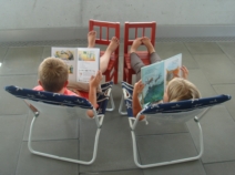 Mattias läser nu nästan flytande på tyska. En ny och spännande värld har öppnat sig för honom! Han kan under en helg sluka 8-10 böcker (första läseböckerna) och är en flitig besökare på bibioteket. Han läser nästan allt, har ett brett intresse. Han sa i vintras att han inte kan läsa på svenska, det är för svåra bokstäver att uttala tyckte han. Men helt plötsligt så lossnade det, och nu läser han även på svenska.
